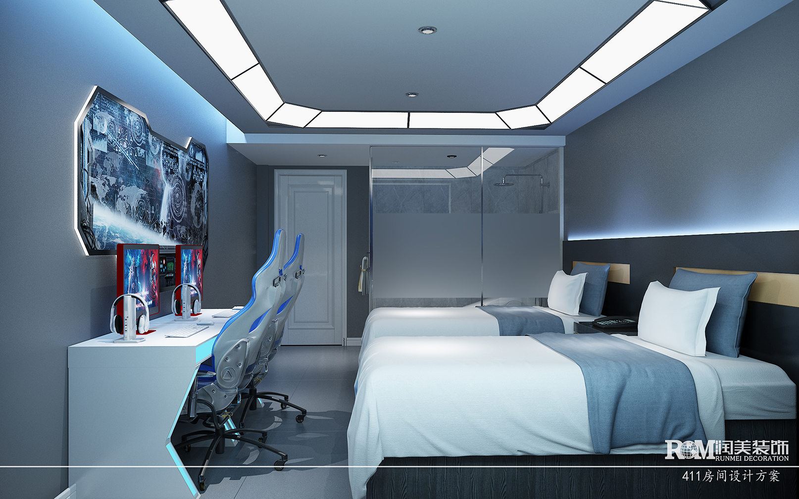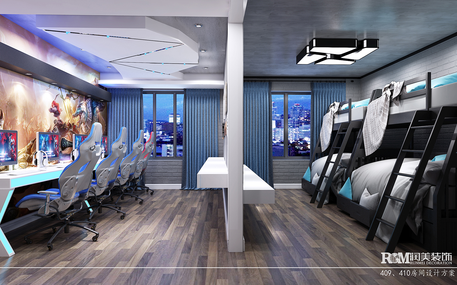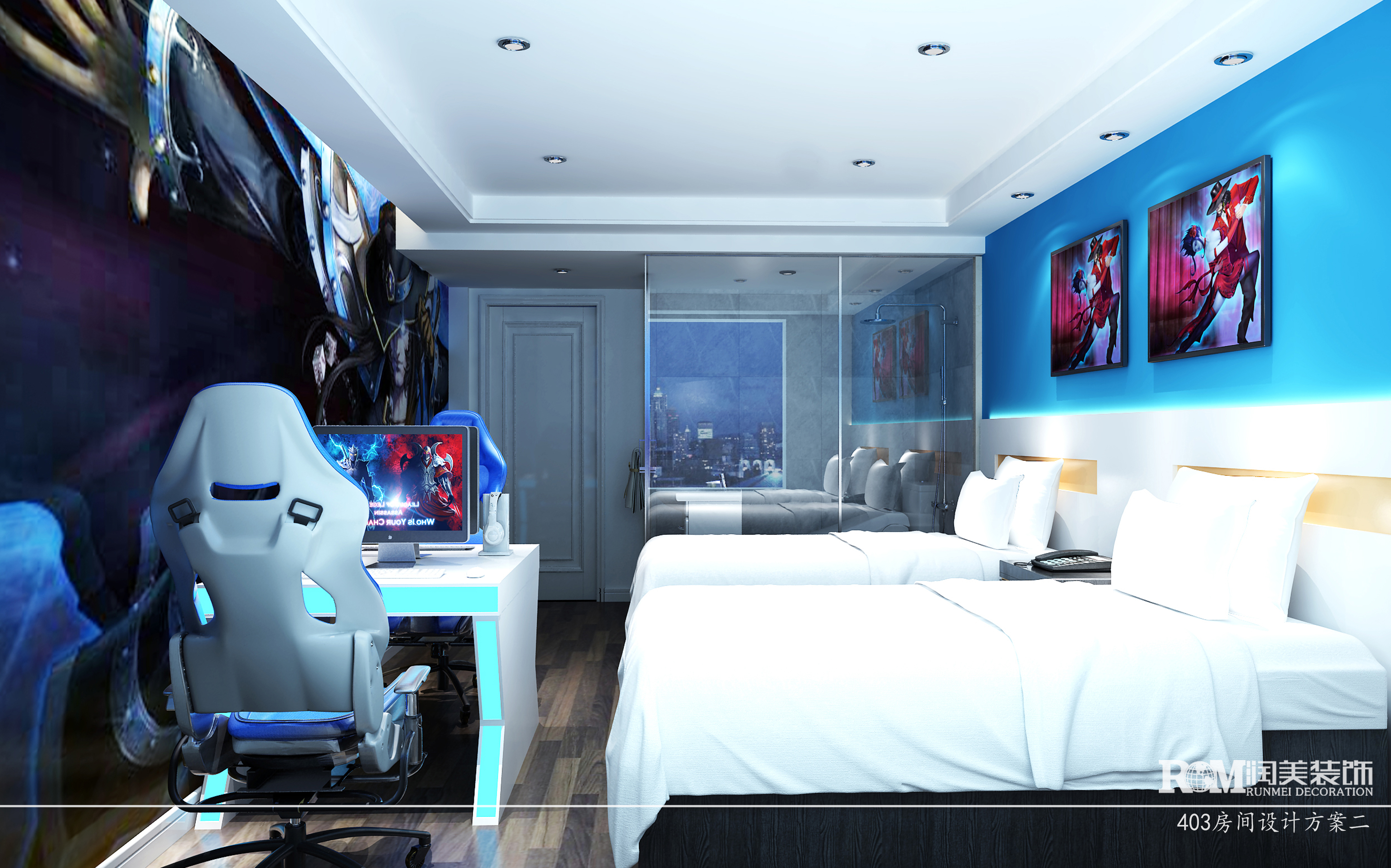 賓館客房的設(shè)計(jì)是為了滿足大眾消費(fèi)者的休憩需求,而電競賓館則更進(jìn)一步,將客房的休息功能與娛樂服務(wù)功能相結(jié)合,在客房內(nèi)設(shè)計(jì)專業(yè)電競區(qū)域,將高配置的專業(yè)電競設(shè)備裝配在客房內(nèi)部。這樣的設(shè)計(jì)方式目的就是為了更大范圍的貼合客戶的需求,娛樂與舒適一體是電競酒店裝修設(shè)計(jì)的重點(diǎn)。